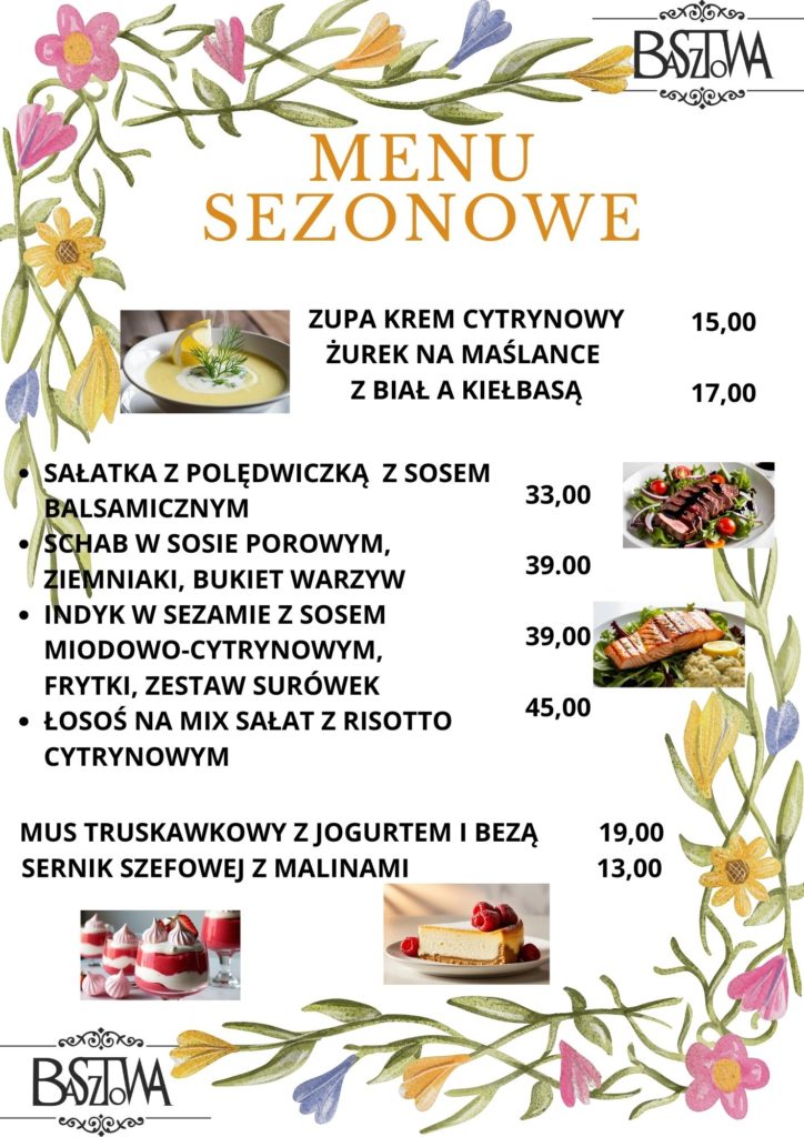 Sandacz , frytki, zestaw surówek Łosoś, ziemniaki pieczone, warzywa z wody | 49 zł 48 zł |